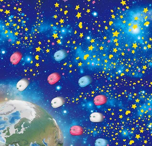 The rest of the image is filled with yellow stars, hearts, and one musical note. The challenge is to find the musical note as quickly as possible.