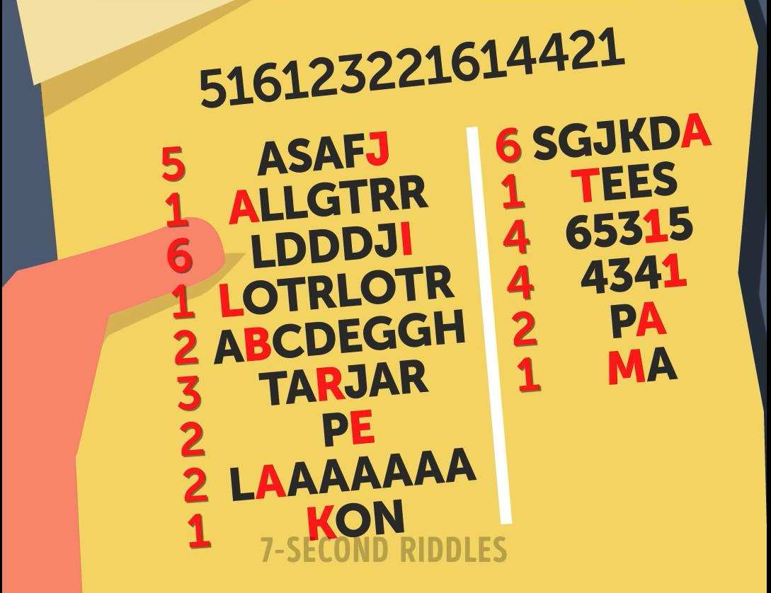 For example, the first number of the series, 5 represents the 5th letter of the first word.