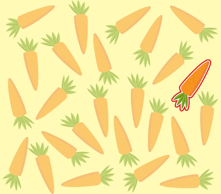 In this brain teaser puzzle, you can see a number of carrots. But, there is one carrot that is different from the others.