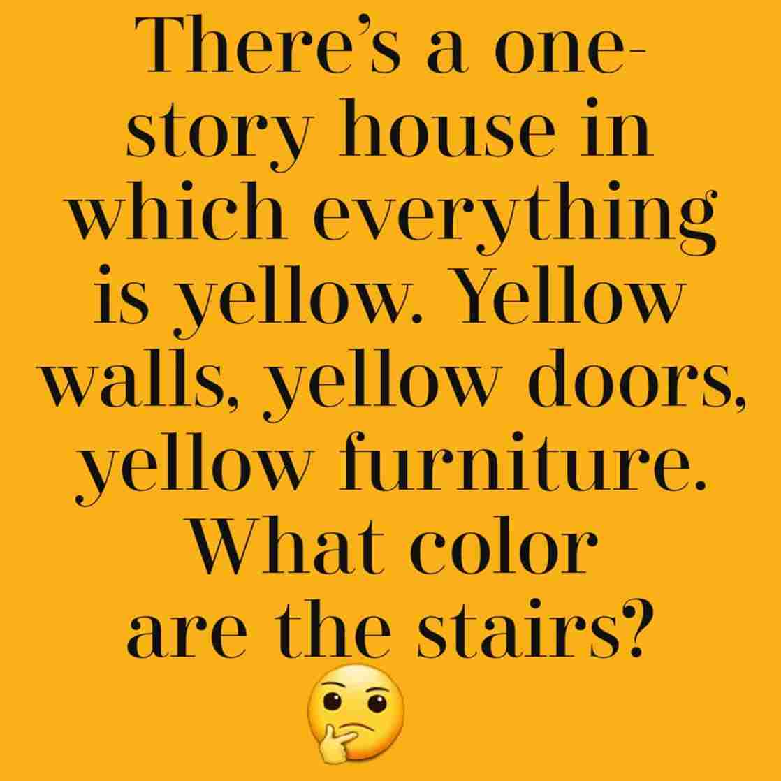There’s a one-story house in which everything is yellow. Yellow walls, yellow doors, yellow furniture. What color are the stairs?