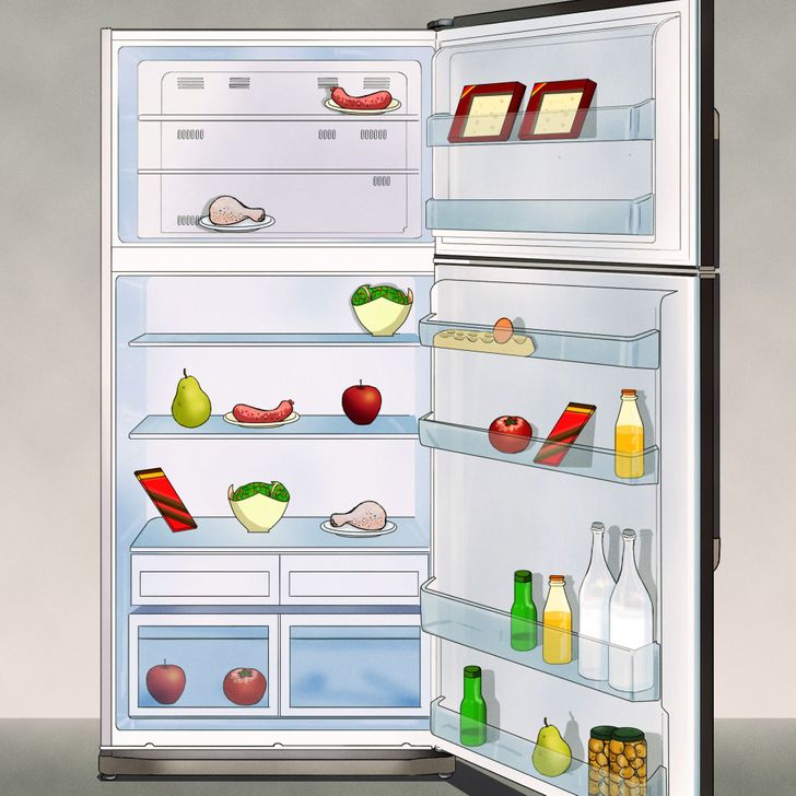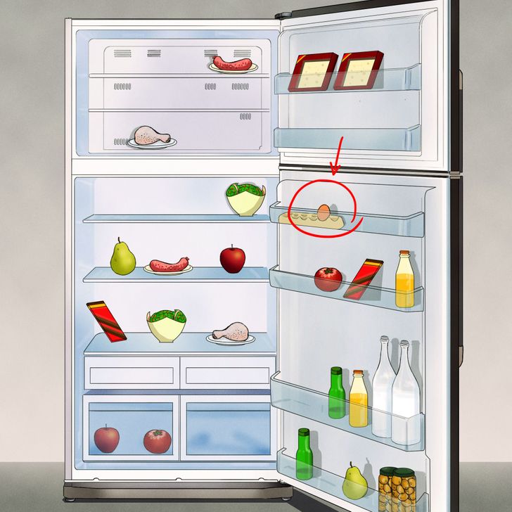 If you look at all the Food Items carefully inside the image, then you will be able to identify the Food Item that doesn’t have its twin inside the fridge. The Food Items that have a twin on the fridge are Bacon, chicken, chocolate, Juice, milk, green vegetable in a bowl, apple, tomato, snacks in jar, green bottle, maroon box and pear. So, the only food item that doesn’t have its twin inside the fridge is the egg.