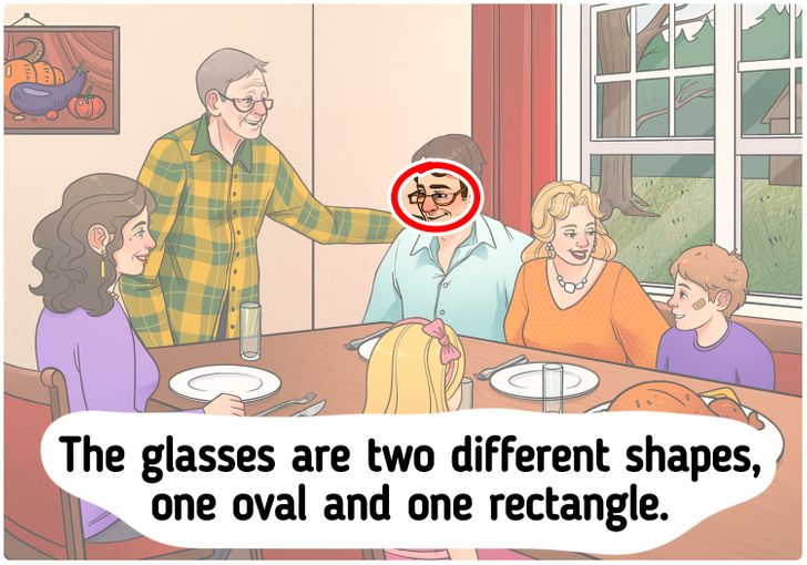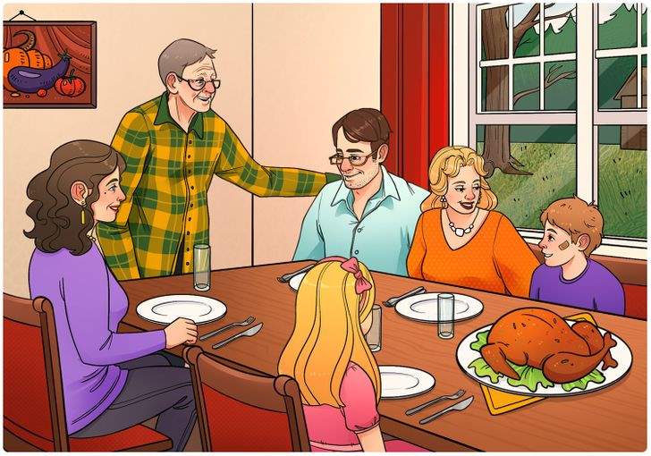 In the above image, you have to spot the mistake hidden inside the picture where a family is enjoying their Dinner. In the image, you can see the family is going to have in their Dining Room. The old man is standing and rest of the family is sitting at the dining table. A big turkey has been served on the table. However, there is a mistake hidden inside the picture. You are required to look at the picture carefully before answering the question as the answer is quite simple but tricky. As a heads up, the answers to this brain teaser have been given right below the question, so make sure you don’t scroll too far and cheat!