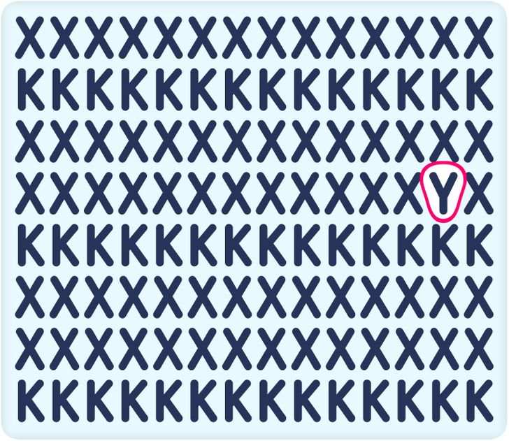 In this brain puzzle, you need to find out the hidden letter that has been hiding among the alphabets X and K. There are 5 rows of the Alphabet ‘X’ and 3 rows of the Alphabet ‘K’. To find the hidden letter within 13 seconds you need to look quickly through all rows and columns.