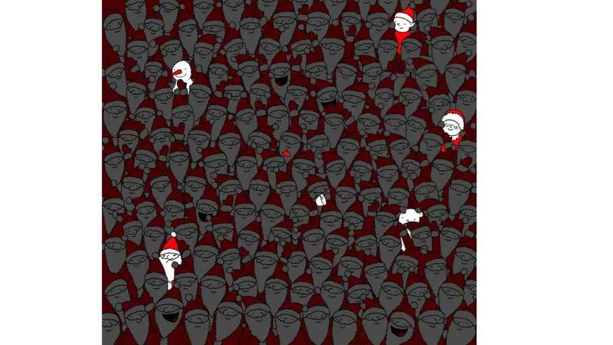 This picture puzzle comprises 7 different Christmas things hidden in the Santa crowd. Take a closer look at the image from all sides and angles to avoid any differences or variations before you come to any conclusion.
