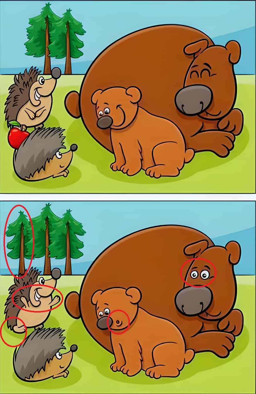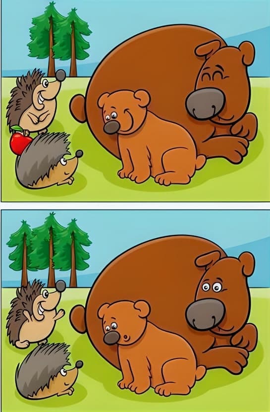 The image shared above shows a forest scene where two side-by-side images of bears and hedgehogs can be seen.