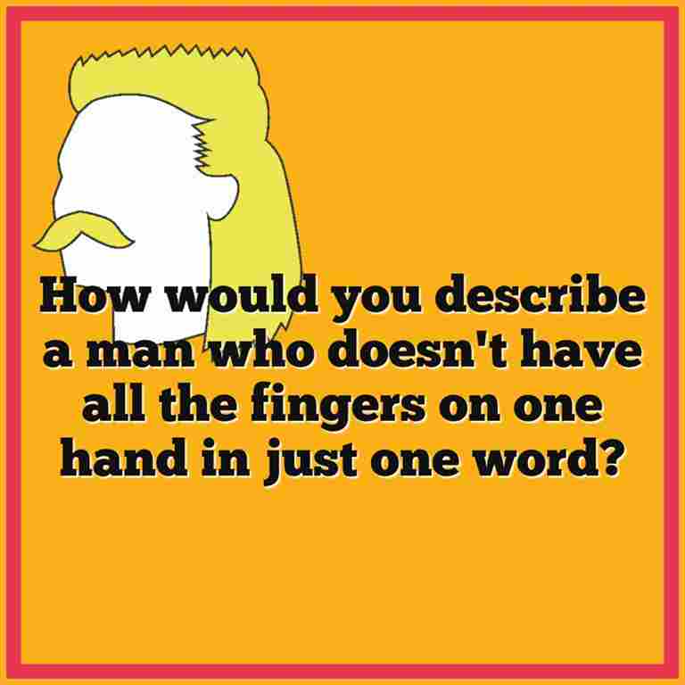 How would you describe a man who doesn’t have all the fingers in one hand in just one word?