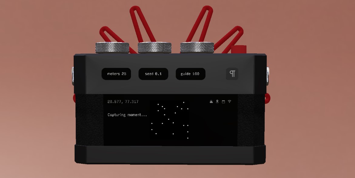 Here is what Paragraphica website states “The first dial behaves similarly to the focal length in an optical lens but instead controls the radius (meters) of the area the camera searches for places and data.”