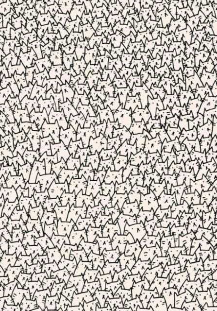 As you start looking at the image, you will notice a background filled with cats that play a significant role in hiding the dog perfectly.