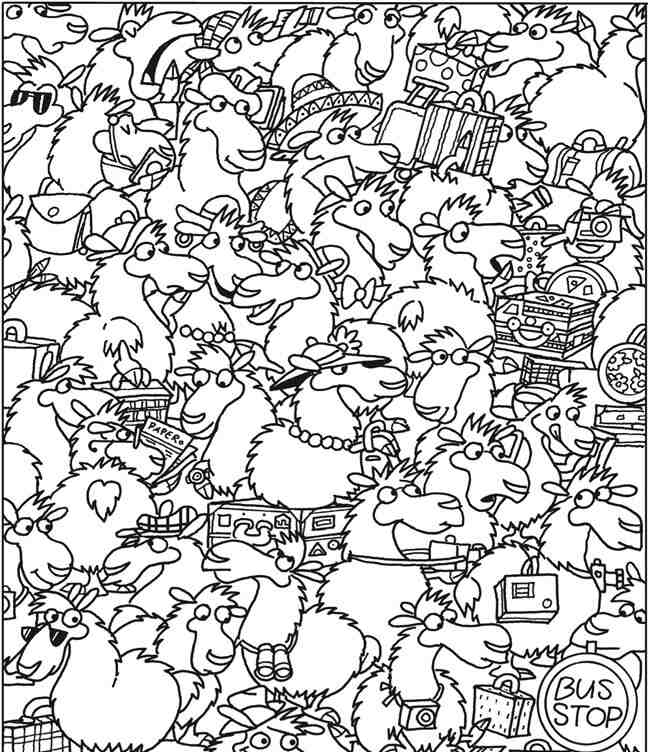 This optical illusion is a picture of a bunch of animals, and if you look closely, you can see a fire truck hidden among them.