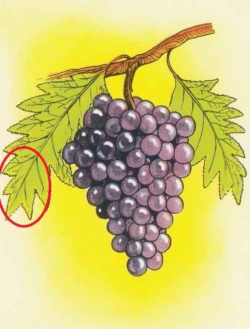 The mistake in the picture is that the shape of the leaves of the grapes is not correct, the leaves shown in the picture are that of a fern.