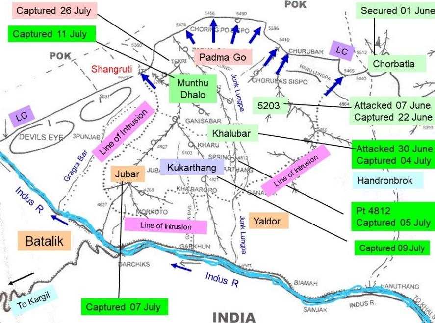 - Indian Army captures two significant positions in the Batalik Sector.