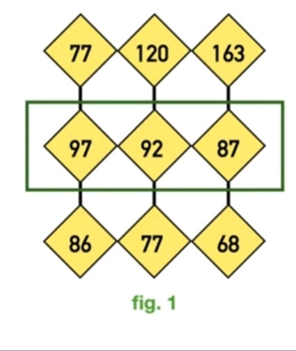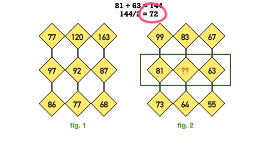 If we see the first row of numbers in Figure 1 you can apply the logic of adding the first and last numbers in the blocks and then dividing the result by two. You will see that the resulting number is the second number in the row.
