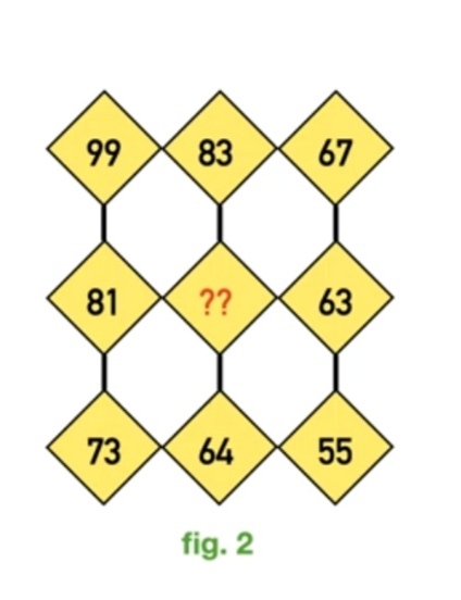 Similarly in figure 2 numbers are following the same pattern as in figure 1. To get the missing number you can apply a similar logic.
