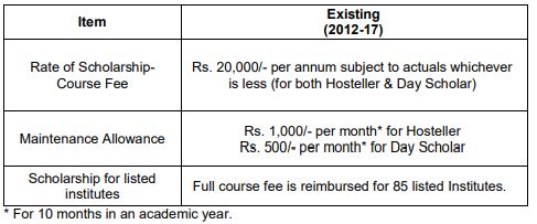3- Merit-cum-means scholarship for the listed courses at under-graduate, post-graduate, technical and professional courses.