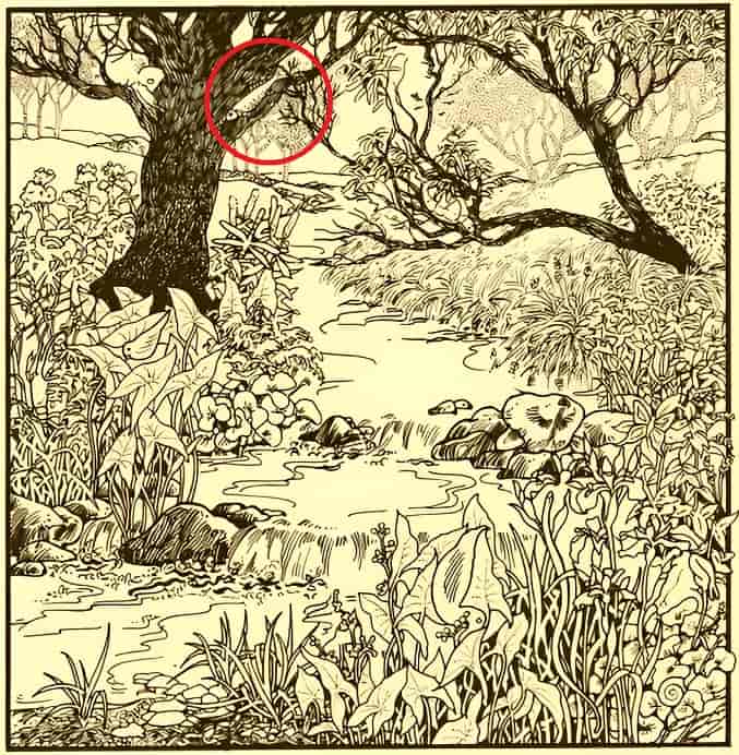 The fish can be seen on the tree and its location is highlighted with a red circle.