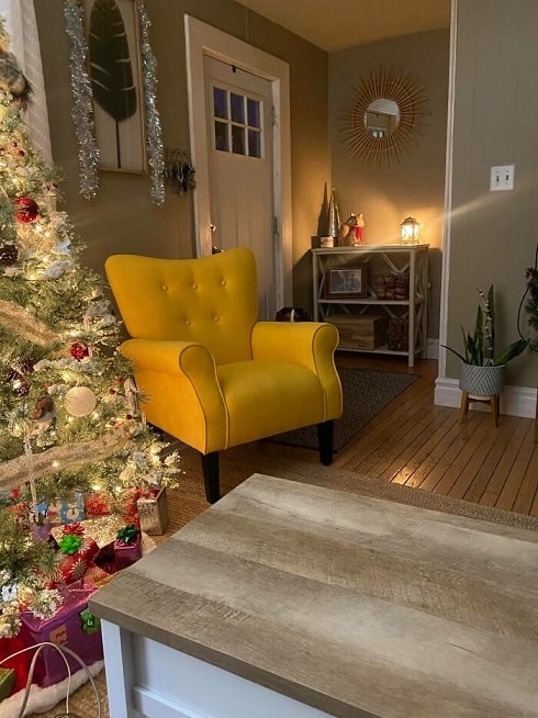 Adding to the beauty of the decoration are gifts and making the room look more beautiful is the chair and the center table along with the painting on the wall.