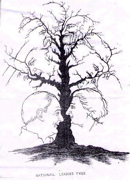 Some suggest that the National Leaders Tree was drawn in the 1880s by an anonymous illustrator for Harper's. If that is true, the above guesses are wrong, as many Indian leaders were not born then.