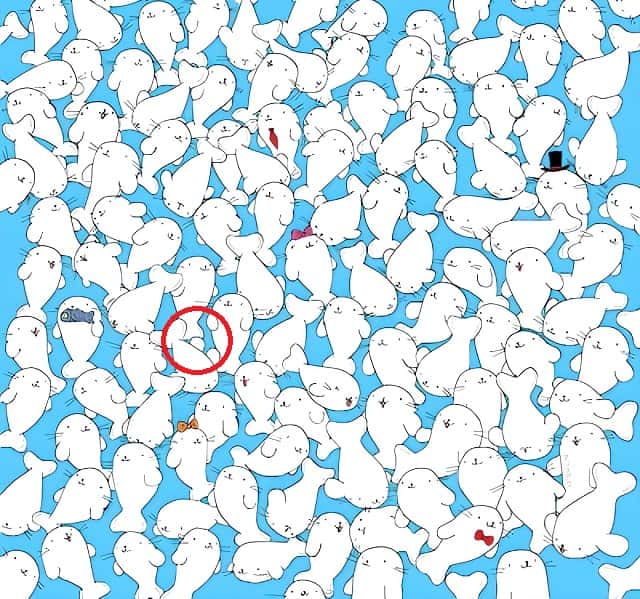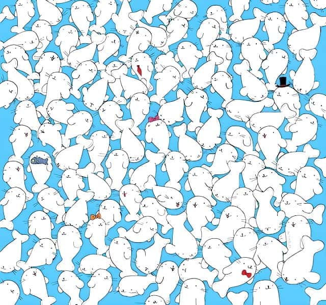 In this image, we can see a group of seals happily playing around. The challenge for you is to find a hidden marshmallow among the seals within 10 seconds.