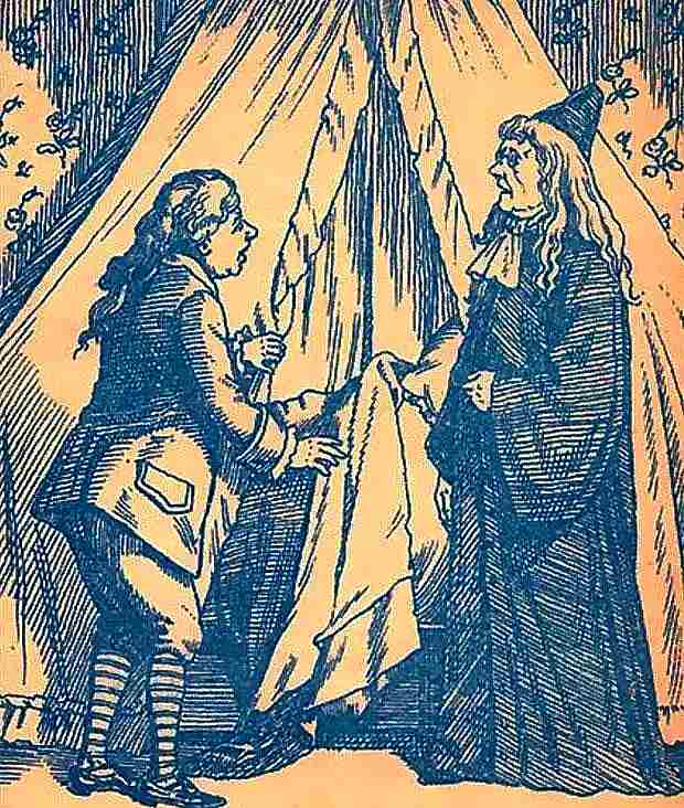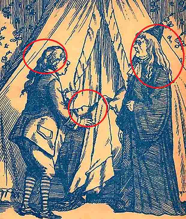 The above image is a vintage scene in which two persons can be seen conversing in what appears to be outside a tent. All seems going fine but, are you able to spot three hidden faces in this image?