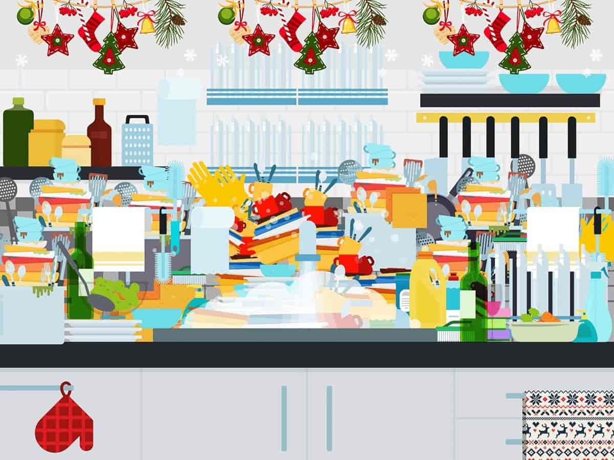 The kitchen looks very messy in the image, which most likely happened due to guests coming over.