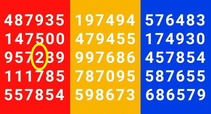 The number 2 has blended perfectly with other numbers, making it difficult to spot at first glance.
