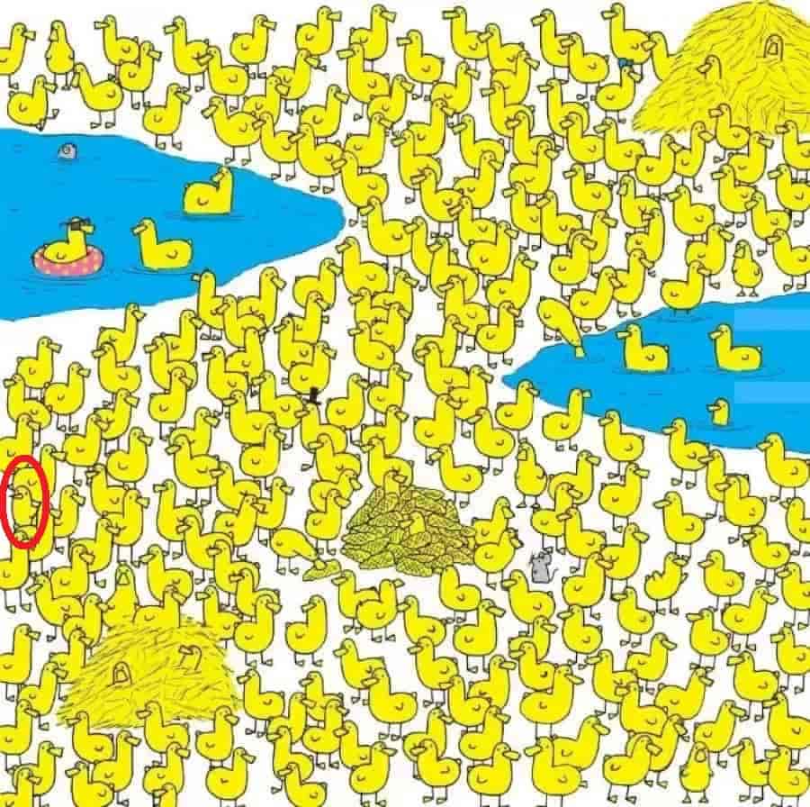 Individuals with great observation skills will be able to spot the baby chicken among the ducks earlier than others.