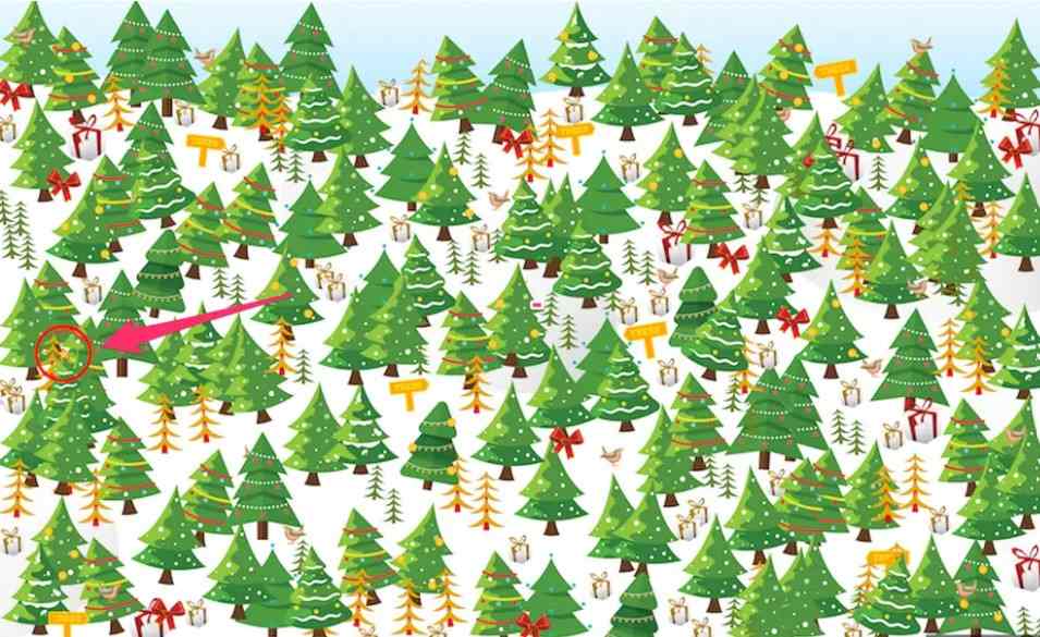 Optical Illusion for IQ Test: Only 2% of People can spot a hidden Star on top of a Christmas Tree