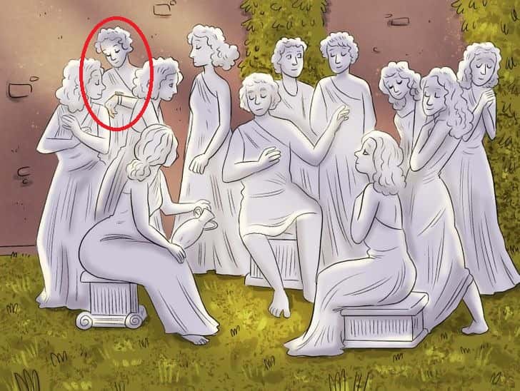 A man is hiding among the statues, and you have 6 seconds to find it.