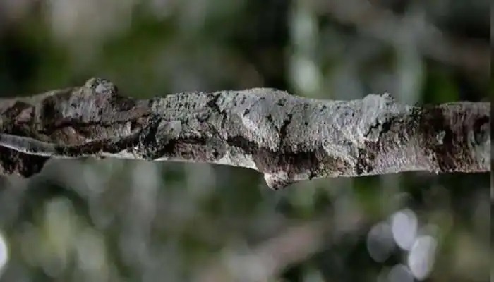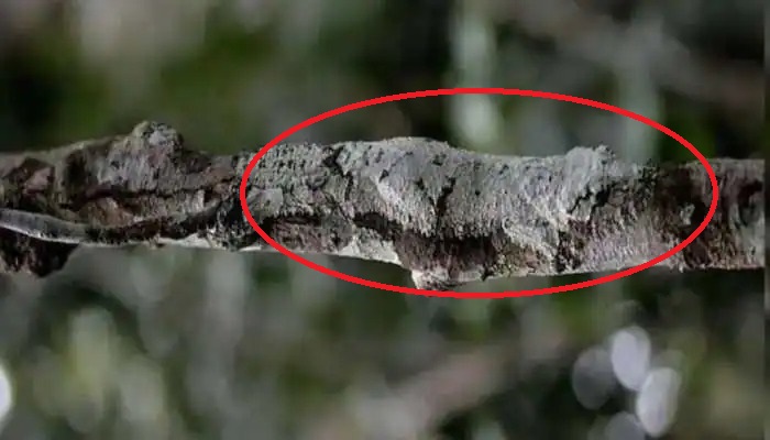 The above image depicts a forest scene in which you can see a tree branch. The tree branch looks to be worn out. This tree branch looks simple at first glance, but do you know there is a hidden lizard in this tree branch?