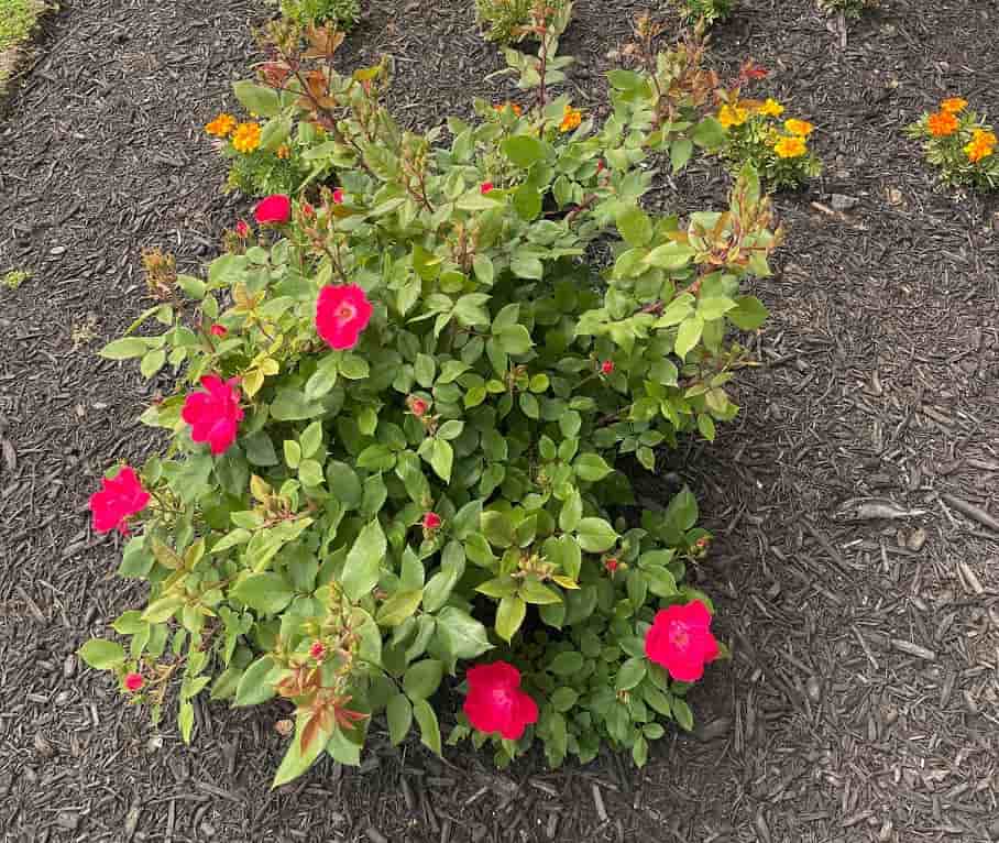The image shared above depicts a garden scene with blooming roses.