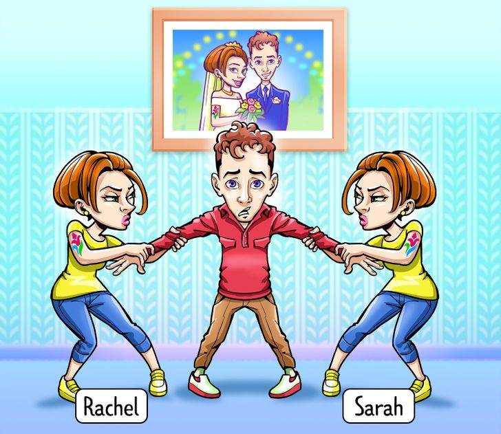 This puzzle was created as a brain teaser to test your intelligence level. In the image, you can two ladies, Rachel and Sarah, claiming the man as their husband. However, only one of the ladies is the real wife of the man. The puzzle challenges the viewers to find the lady who is speaking the truth by asking “Who is his real wife?”.