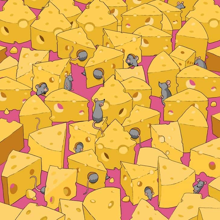 The image shown above contains blocks of cheese, and you can see rats jumping through the blocks.