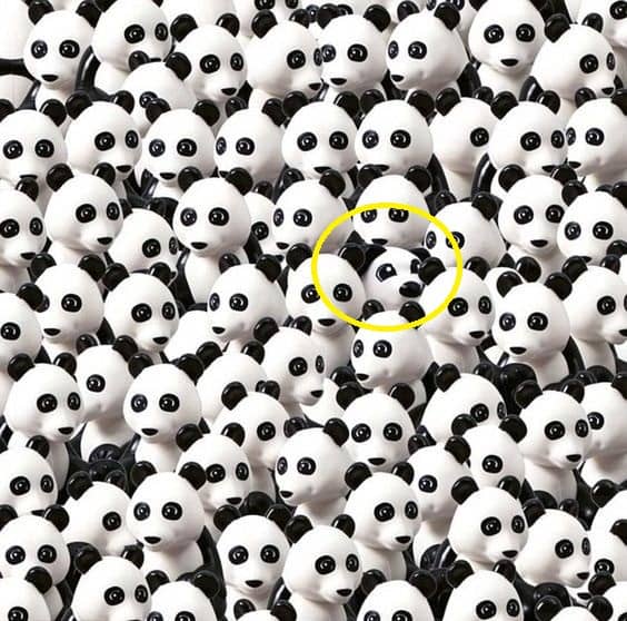 The key to solving this seek and find puzzle is to pay close attention to the image and see if you can spot a dog among pandas.