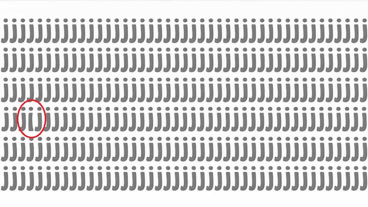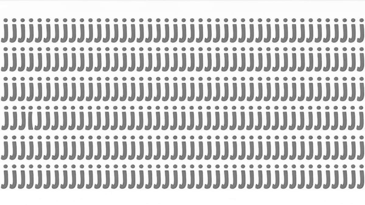 The image shared above depicts a series of letters J. There is a single letter that is different from the others and you have 7 seconds to find out the odd letter.