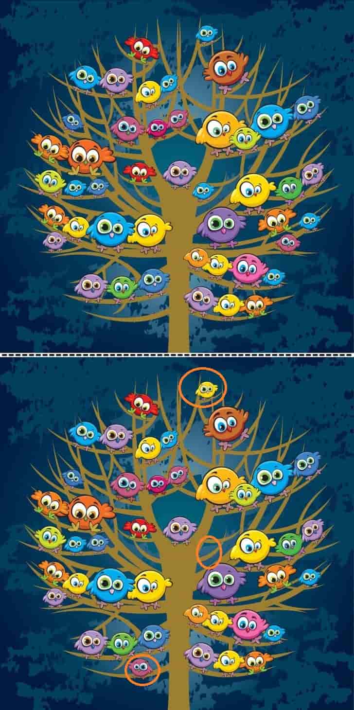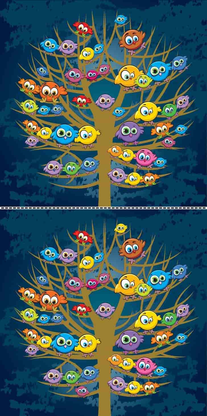 The image shared above depicts two identical images where you can see a tree with birds perched on the various branches.