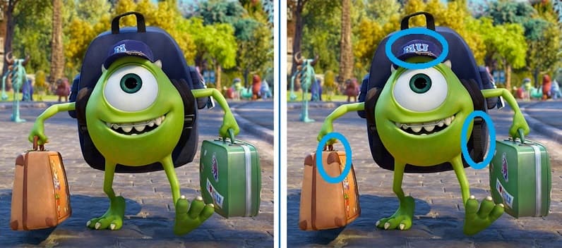 The key to finding the differences between the two images is to watch the images carefully and note the differences that come to your attention.