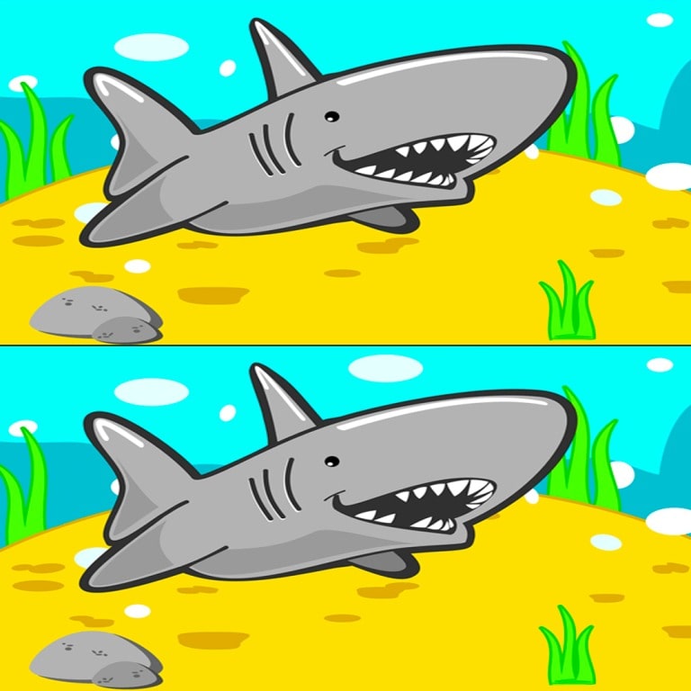 The image shown above depicts a shark in the ocean. There are 3 differences between the two images and you have 9 seconds to find them.