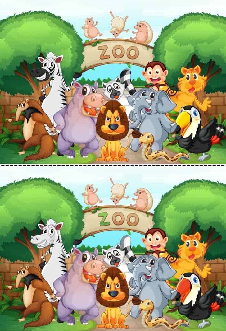 The image above depicts two identical pictures where animals can be seen enjoying their day in the zoo.