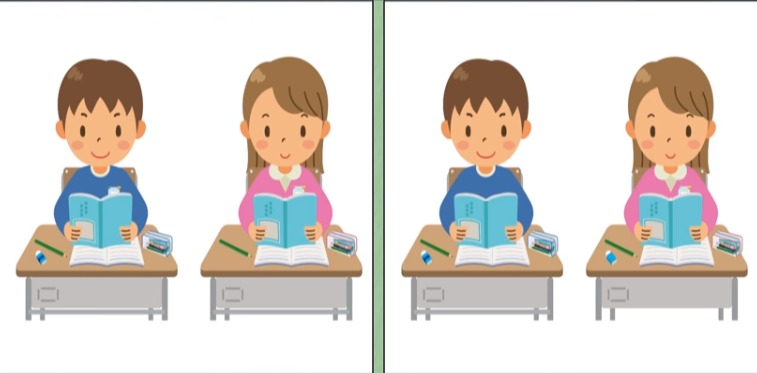 The above image shows a study room scene in which you can see two kids studying. There are two images side by side and they both look similar.