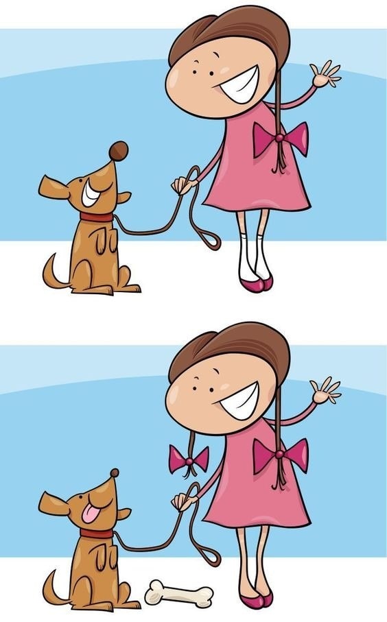 The image shown above depicts two identical pictures where you can see a girl playing with her pet dog. Although the images are identical, there are 5 differences between the two images, and you have 10 seconds to find them.
