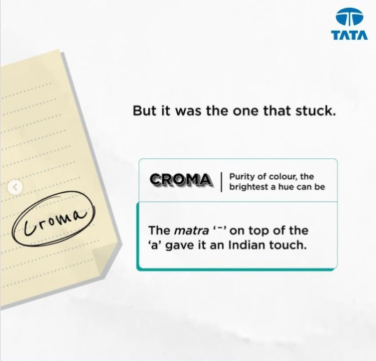 The retail chain company was named on a flight. Solar, Sun, Super, Prime and Circle were the first choices but Cromā was the one that stuck. It means 'purity of colour, the brightest a hue can be'. "The matra '-' on the top of a gave it an Indian touch," revealed the company in its Instagram post.