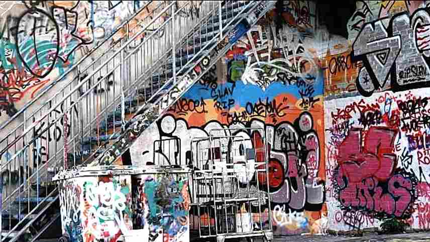 Here, the cat was in love with the graffiti and swirled around the wall and poles several times.