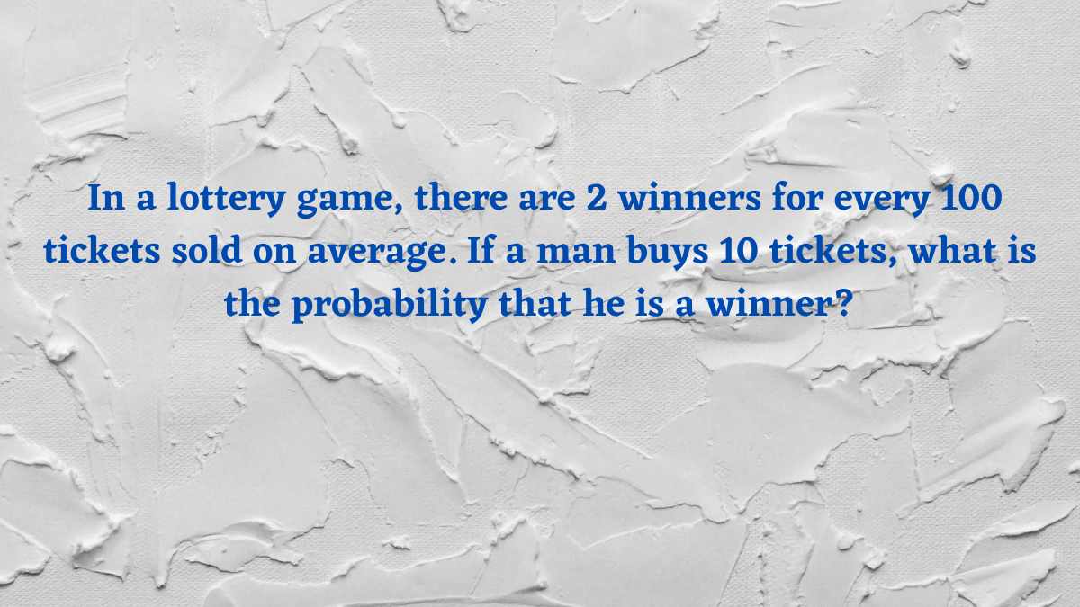 Therefore, the probability of atleast one winning ticket is: 1 - 0.817 = 0.183 = 18.3%