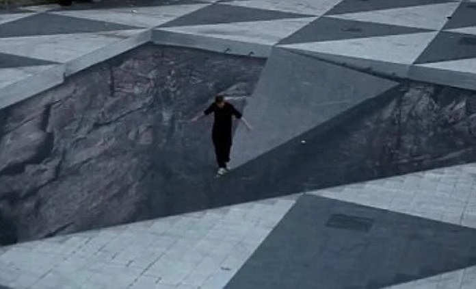 You may fall into a deep abyss. Swedish artist Erik Johansson has created an incredible optical illusion in the centre of Stockholm making it seem like a giant hole has opened up in the middle of the main city square. The street illusion measures 32 by 18 metres and is located in Stockholm.