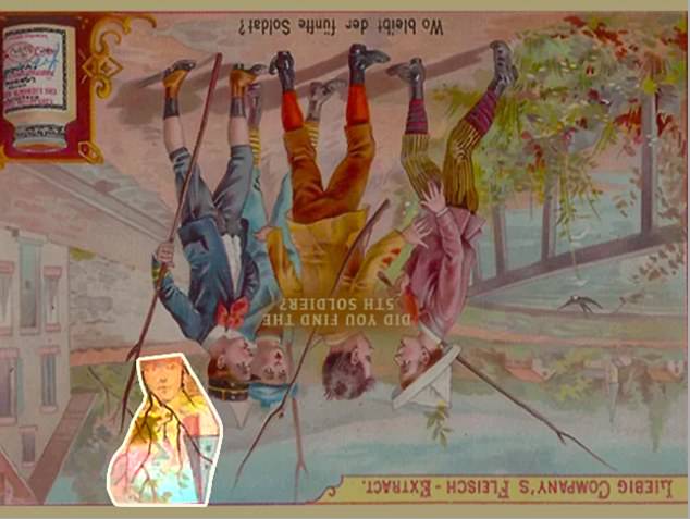 The goal of this hidden object visual test puzzle was to spot the fifth musketeer in 7 seconds. Here is he: