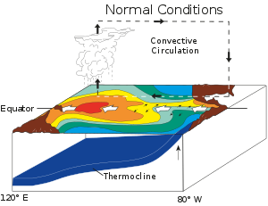 - When there is no El Nino and it is a normal monsoon year the pressure distribution causes the coast of Peru in South America to have a higher pressure than the region near northern Australia and South East Asia.