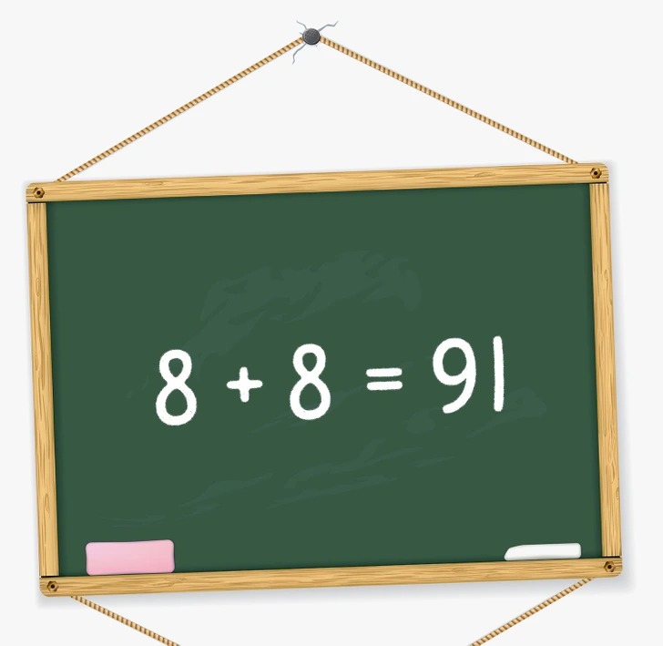From the image shared above, you can see a mathematical equation where 8 + 8 = 91.